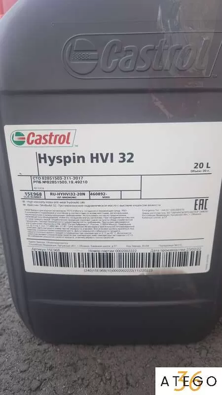 15E968 Масло противозадирное гидравлическое с высоким индексом вязкости. Castrol Hyspin HVI 32, 20 л