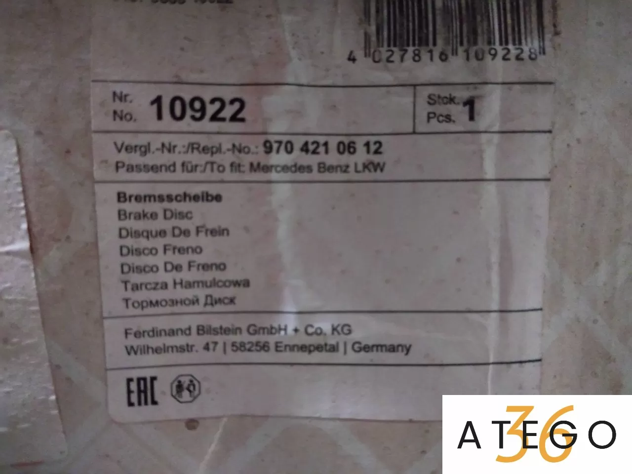 • Номер запчасти: 10922